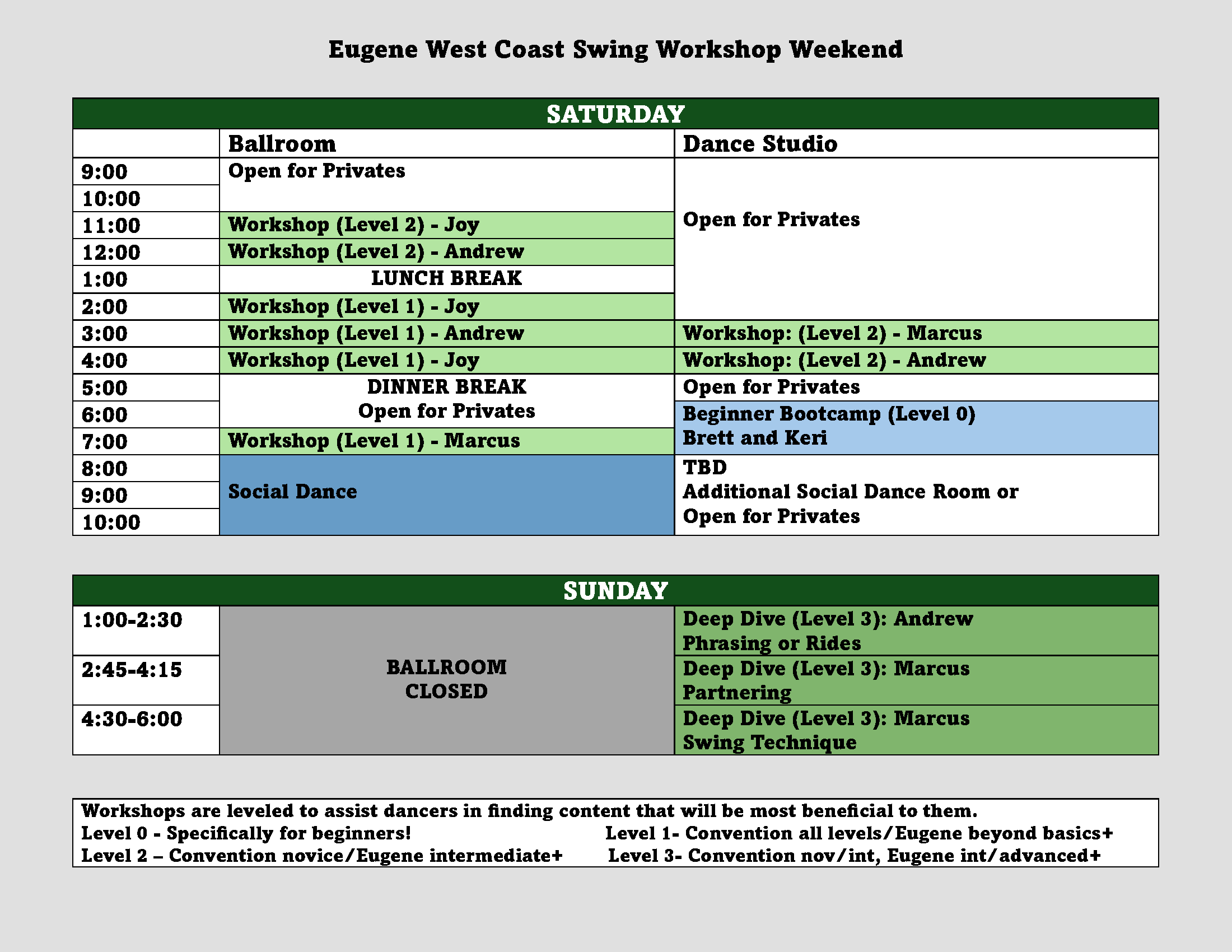 Eugene WCS Workshop Weekend Schedule Draft